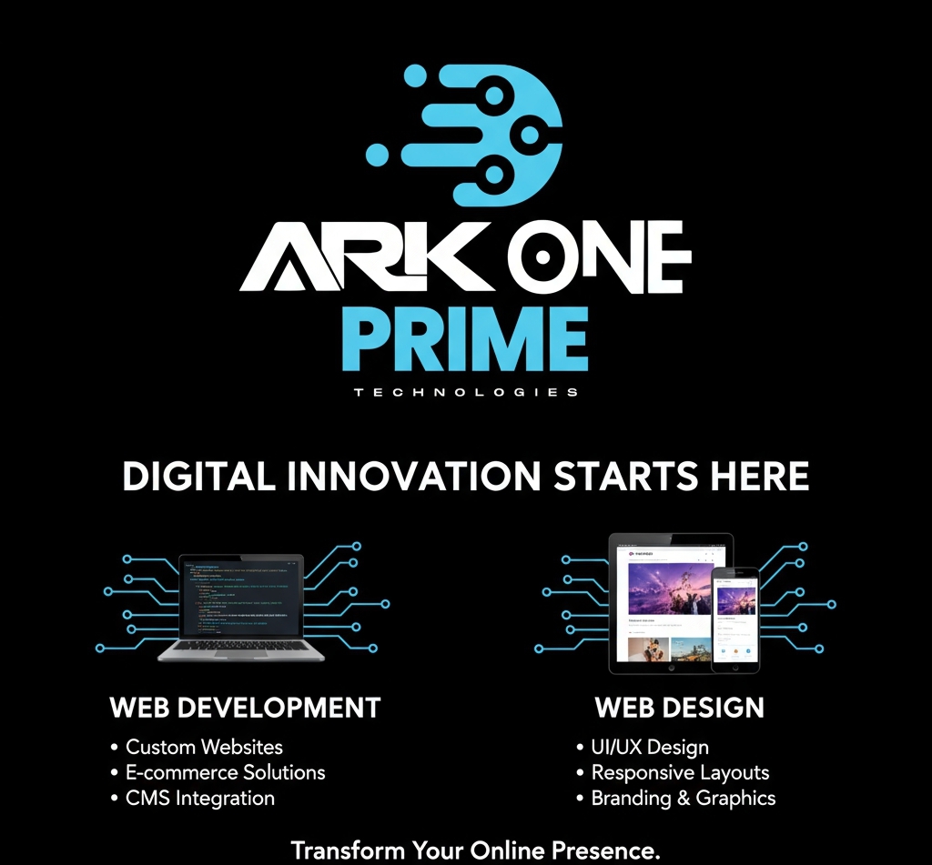 At Ark One Technologies, we are passionate innovators dedicated to helping businesses thrive online. Based in Kenya, we specialize in website design, development, and social media management. Our goal is to deliver stunning, user-friendly solutions that connect your brand with the world. Join us on this exciting journey!