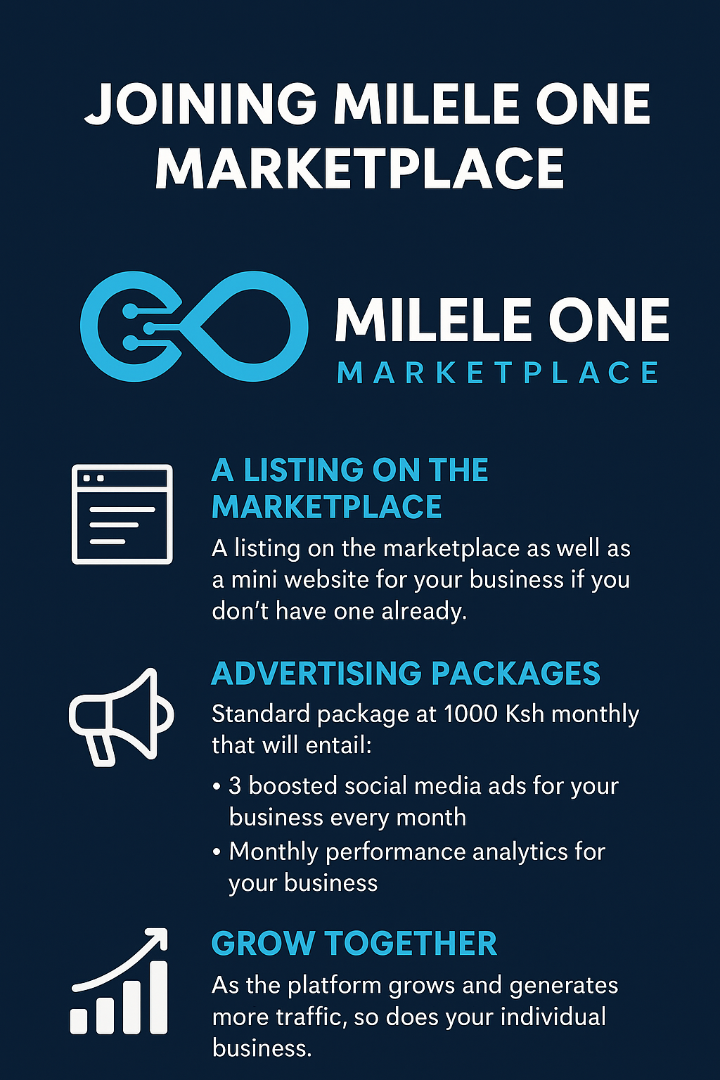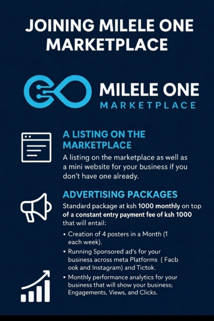 Our platform brings together a dynamic marketplace and tailored advertising solutions designed to help your business reach more people, grow faster, and perform better. Joining the Milele One Marketplace gives your business : A trusted digital home.